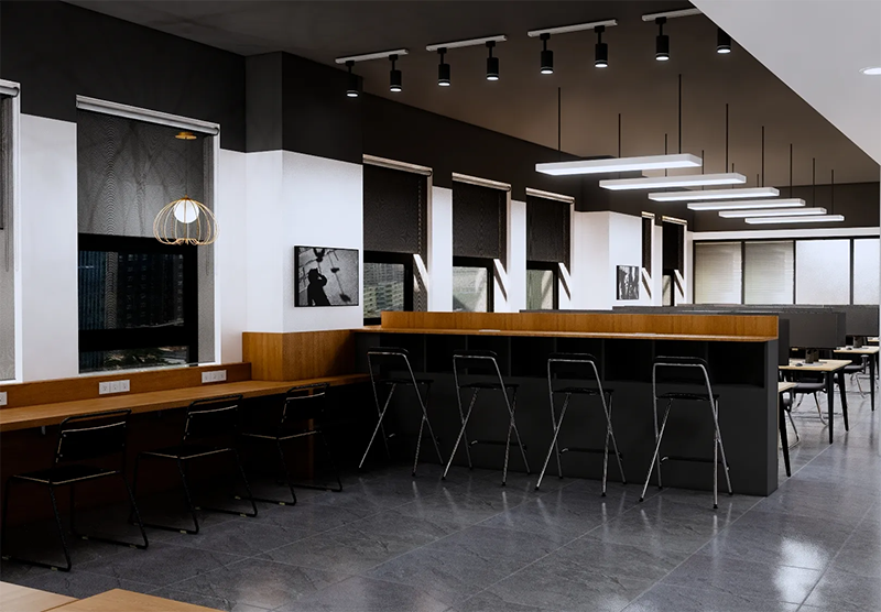 隨著遠(yuǎn)程辦公的普及,團(tuán)隊(duì)成員之間的面對(duì)面交流變得更加稀缺。設(shè)計(jì)時(shí)應(yīng)設(shè)置多功能共享空間,既能滿足團(tuán)隊(duì)協(xié)作需求,又能為員工提供放松和社交的場(chǎng)所。咖啡吧、休閑區(qū)和開放式的創(chuàng)意空間,都可以成為員工放松和交流的場(chǎng)所,促進(jìn)不同團(tuán)隊(duì)成員之間的互動(dòng)和思想碰撞。